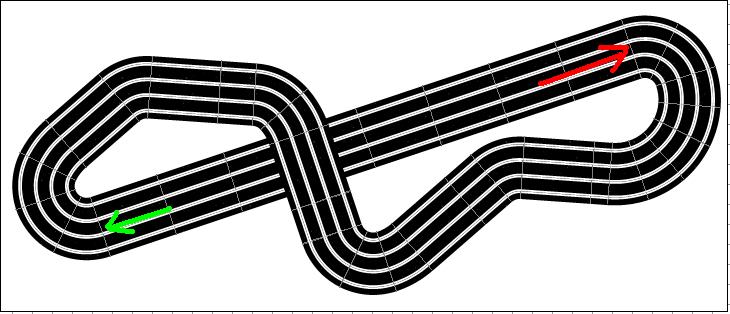 Comme en y réfléchissant mon idée n'est peut-être pas très claire (et que je peux très bien dire des conneries, pas besoin de me forcer pour cela, j'ai un don inné) j'en ai compris que tu tournais dans le sens de la flèche rouge, avec le virage "de la mort qui tue" et qu'en tournant dans le sens de la flèche verte, ben ca irait mieux.