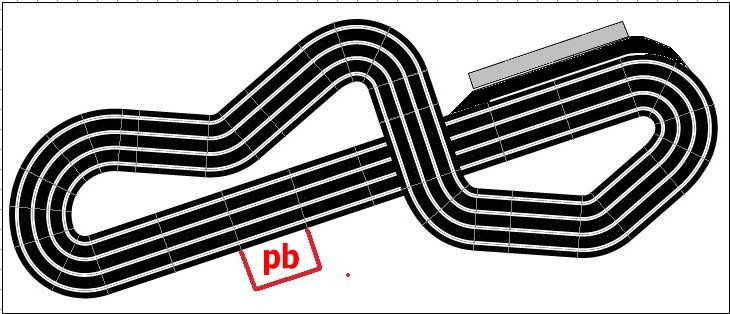 Vraiment super-sympa comme piste, mais à mon humble avis, en faisant tourner tes voitures dans l'autre sens (sens des aiguilles d'une montre) ca éviterait le "virage de la mort qui tue" au bout de la ligne droite et qui s'élargit ensuite pour un virage qui se referme (vicieux, ca, mais sympa) après un tout petit bout de ligne droite.
