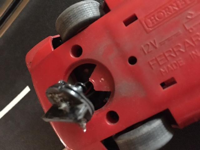 Alors voila , j'ai un soucis, suite à une grosse arsouille avec mon frangin de passage chez moi, une de mes deux ferrari 330 p4 de chez scalextric a son guide qui ne tient plus, le puis de ce dernier a cassé côté châssis