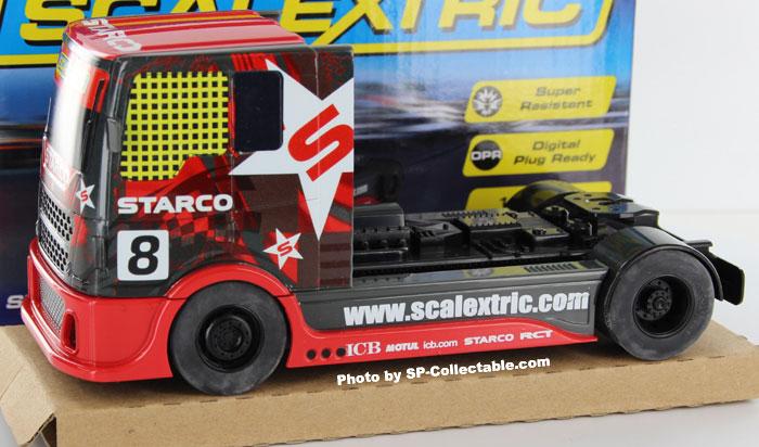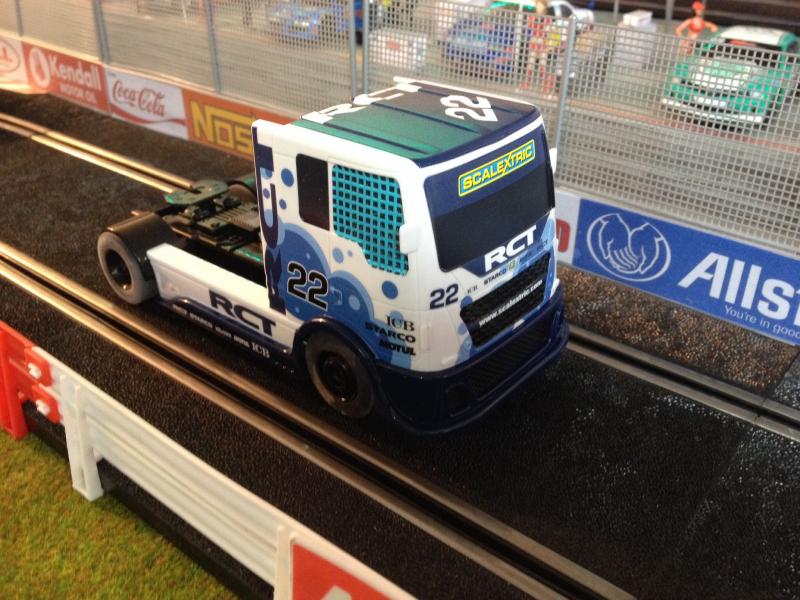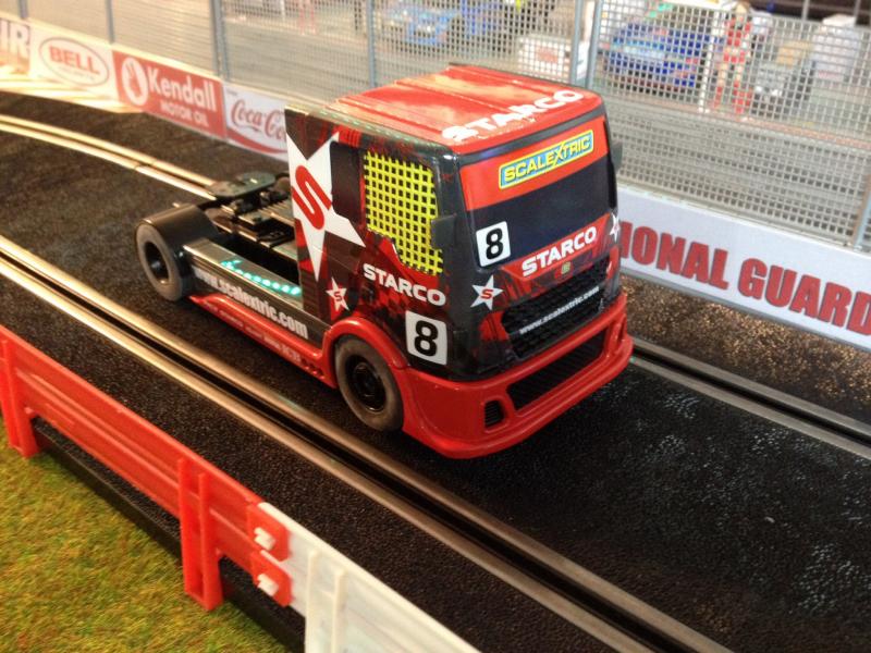 Posé sur ma piste (mix Ninco/Polistil/Scalex) le camion montre des accélérations très convenables, une vitesse de pointe bien supérieure à la longueur de ma ligne droite, mais AUCUN frein et un grip un peu juste.