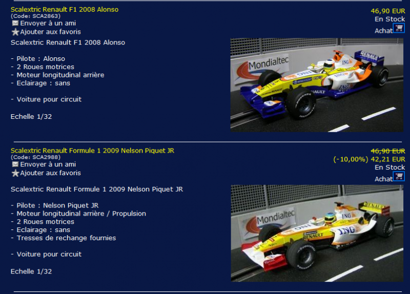 Je ne sais pas si vous vous en etes apercu mais les f1 scalextric ont toujours la meme carrosserie seule la déco change!!