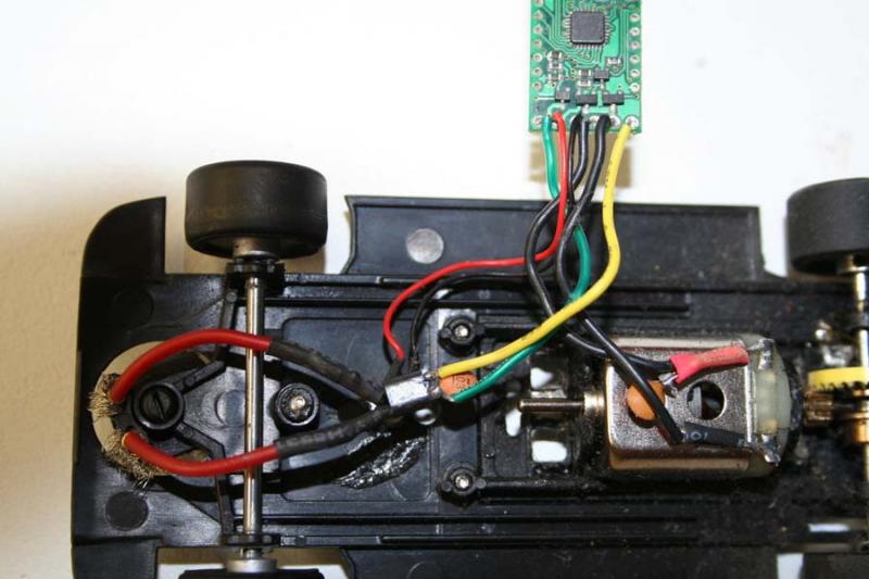 De même que pour l’utilisation de la puce sur du Ninco, il suffit de l’installer dans la voiture (4 fils seulement)