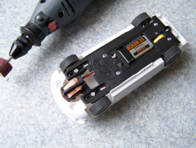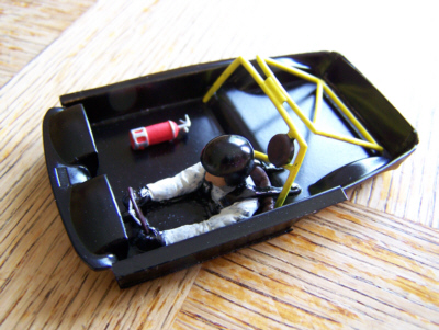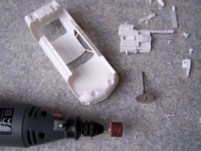 Pour l'habitacle: je l'ai tout simplement coupé en deux, poncé sur une large bande