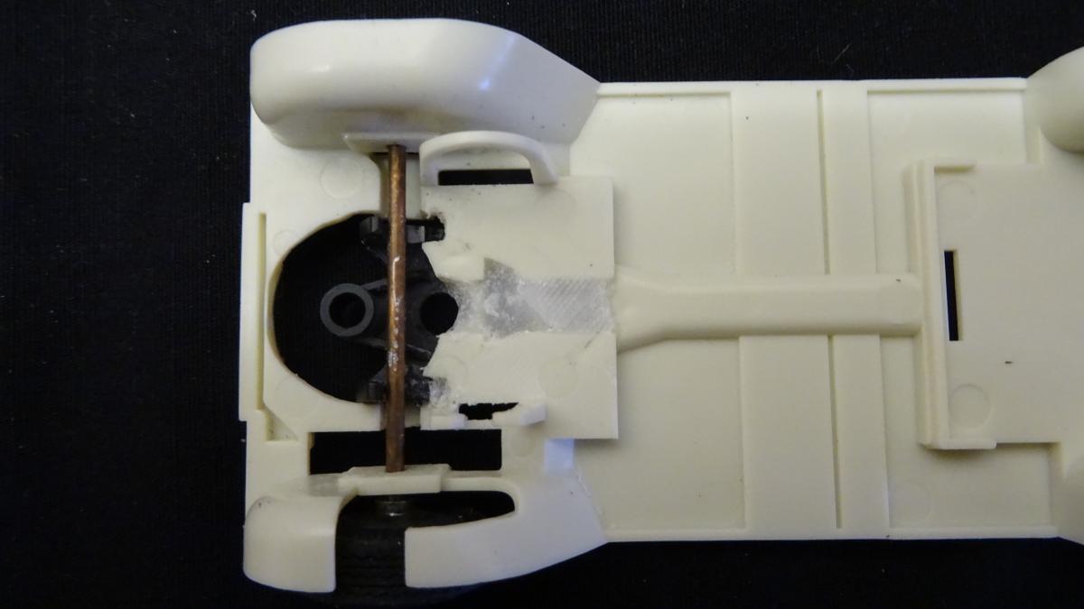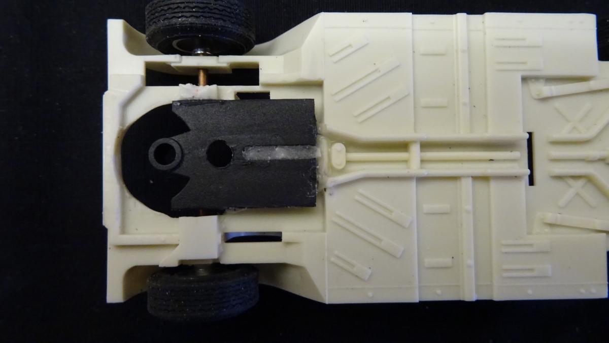Scalextric a fait l'Austin Mini avec les roues avant motrice , il n'y avait pas beaucoup de place pour le guide , , il y a peut être une idée à prendre de ce coté