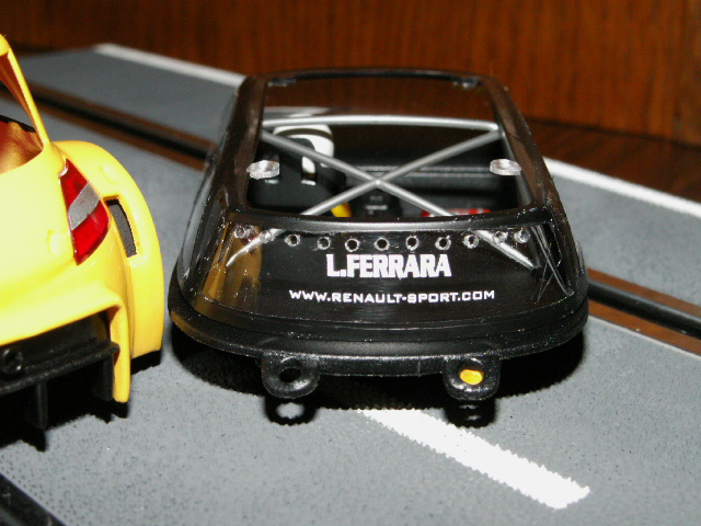 Alors, je me suis lancé. Je me suis servi de la voiture fournie dans le pack MEGANE trophy de NINCO. Il fallait faire un choix, j'ai sacrifié la orange . Puis, mastic, ponçage, peinture. Reste le remontage et la finition.