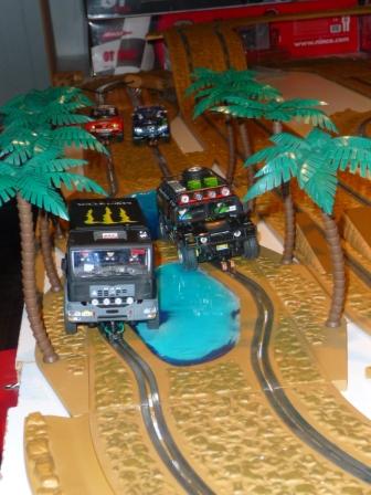 j'ai profité de l'affaire des SCX OFF ROAD pour m'en offrir 2 et j'ai trouvé comment rentabilisé au maximum l'espace dont je dispose pour cette piste. L'ensemble est très plaisant à rouler. Sur le forum je n'ai pas trouvé grand chose sur les pistes OFF ROAD. C'est vrai que seules les voitures SCX peuvent passer ces obstacles. Il va donc falloir modifier certains obstacles et faires des obstacles amovibles pour pouvoir rouler avec d'autres marques.
