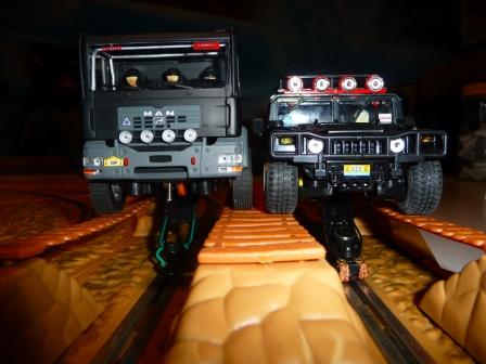 Le camion AVANT SLOT est vraiment très joli. Il ne passe pas tous les obstacles, mais de peu. Donc avec de petites améliorations il devra passer. Par exemple pour les dunes il est trop large. Le HUMMER c'est un peu pareil.