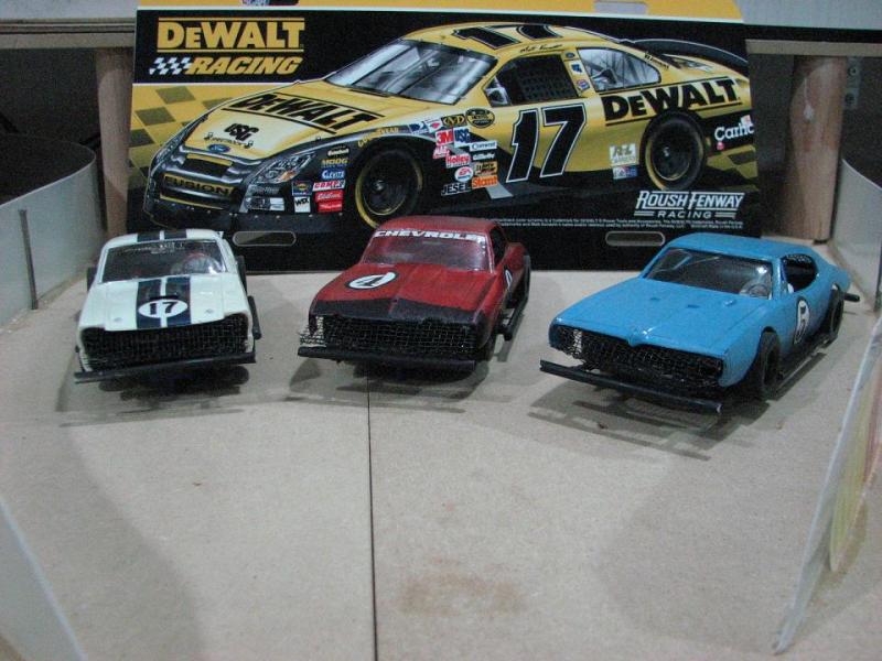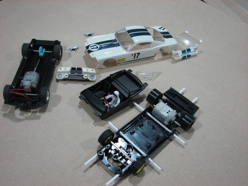 Autre Bomber avec carrosserie de model a coller Pontiac GTO Et la dernière une camaro de scalex avec son chassi d'origine...les trois auto avec intérieur alléger et du lest bien placés et pneu F-1 en uréthanne ... Voici trois voitures avec une performance au dessus de la moyenne....Bon plaisir..