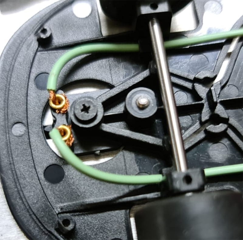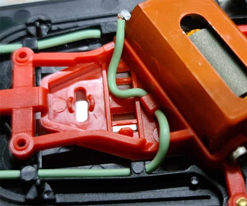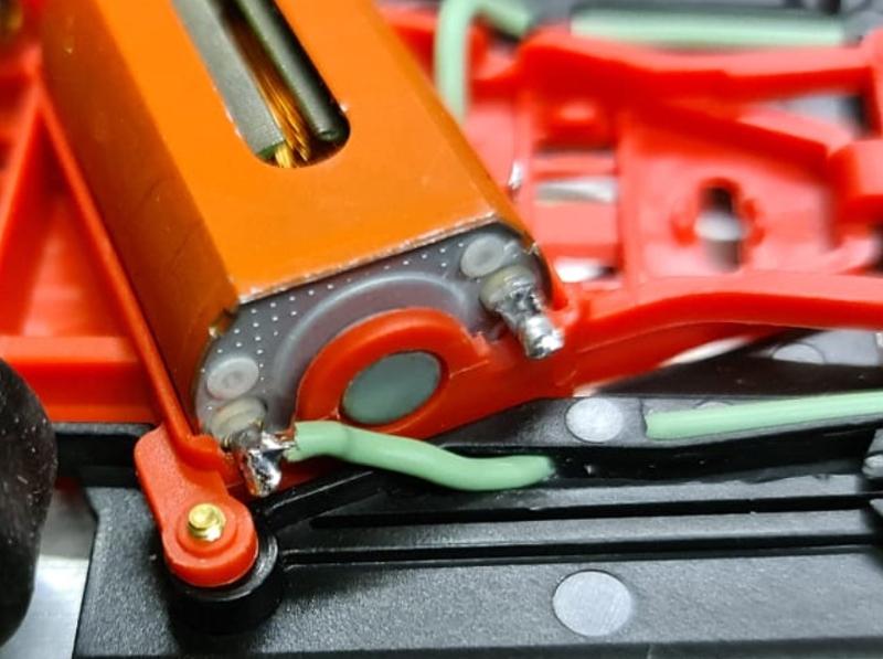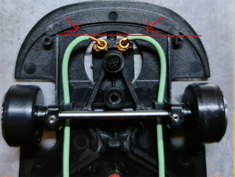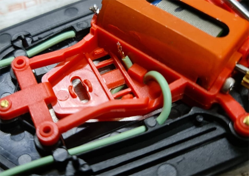 J'ai aussi ajouté une cale entre le guide et le châssis pour amélioré le contact des tresses sur notre piste bois. (cale de 0.10mm sideways swsp/10)