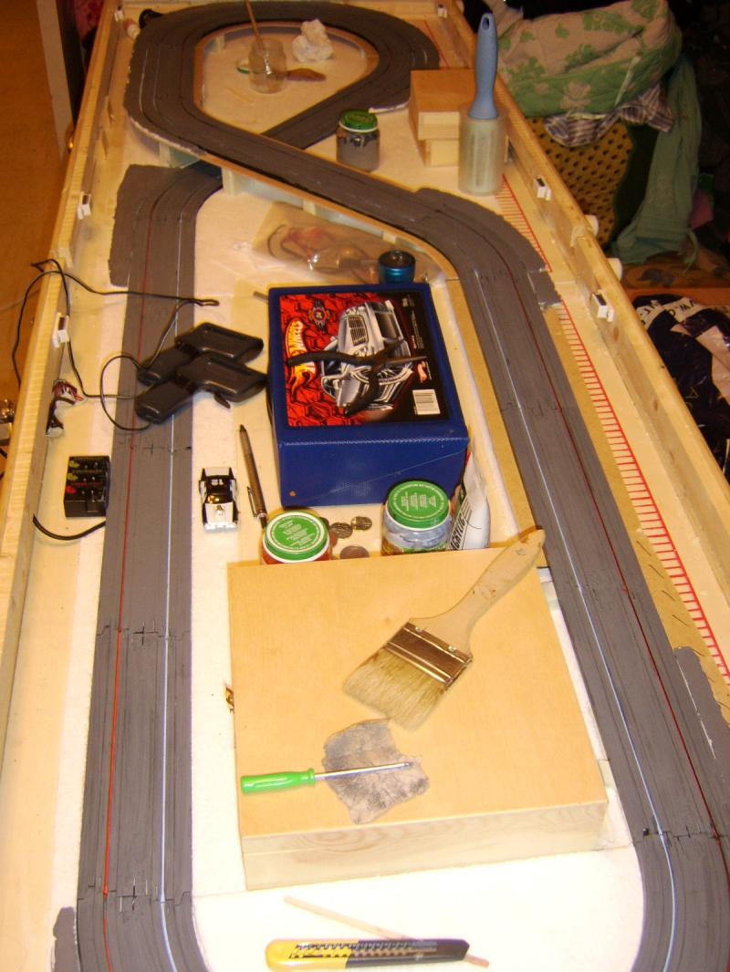 Deux versions de la piste au programme, une version courte, alias coffret d'origine, et une version longue qui fera 4m de long sur 1m50 de large. D'ailleurs, il va falloir que je trouve d'autres rails.