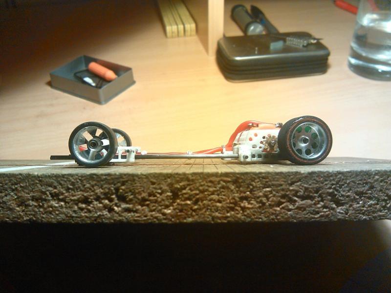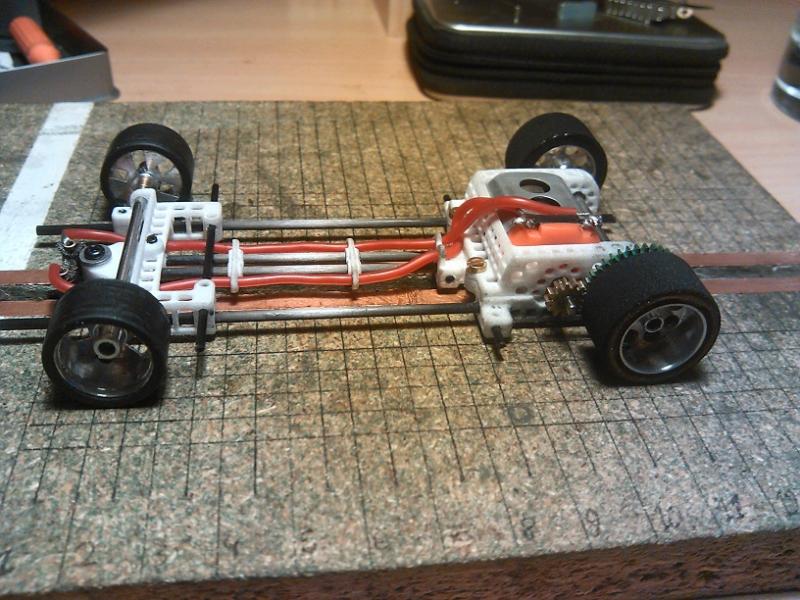 Bon, les nouvelles de mon chassis, ca passe pas, une fois tout bien monté, le moteur en anglewinder touche la carro, tant pis, plus qu'a en refaire un avec un inline