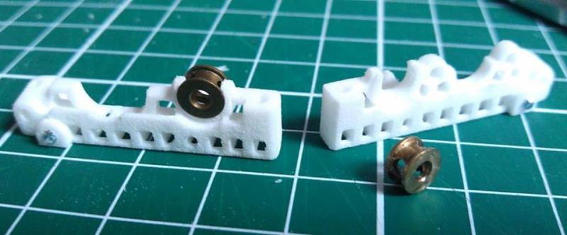 Les paliers laiton à 2 épaulements ont beaucoup de jeu d'origine, impératif car sinon le laiton "serre", ce sont des paliers jouet.