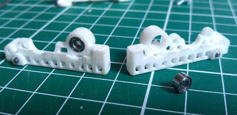 Perso je n'utilise que des paliers en bronze fritté (avec le petit bossage anti-frottement qui va bien) et des roulements (classe 5 minimum) à un épaulement ce qui évite leur déplacement vers le centre du châssis et donne ainsi du jeu dans le train arrière. Ce jeu détruit les transmissions particulièrement pour les inline et nuit à la tenue de route.
