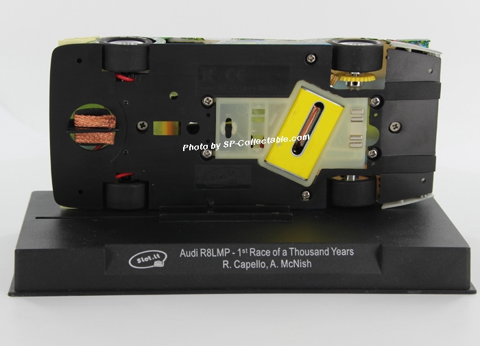 - Je ne vois pas l'Audi rouler sur mon circuit, mais ça c'est une question de goût. La reproduction de la décoration complexe mérite d'être soulignée (mieux que la SCX certainement) mais j'ai toujours un souci avec cette peinture si fine sur les Slot.It que la carrosserie est presque transparente par endroits. NSR (entre autres) fait mieux. À mon sens Slot.It aurait dû d'abord sortir la version crocodile, elle se serait vendue en plus grand nombre parce que cela aurait été leur première R8 ...