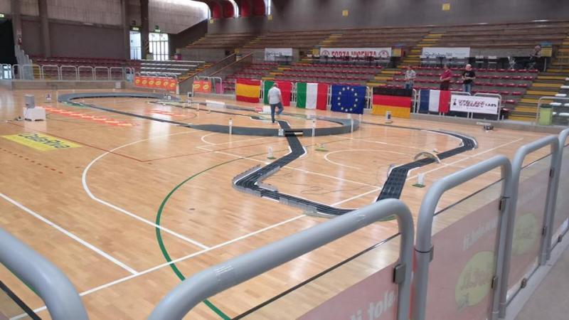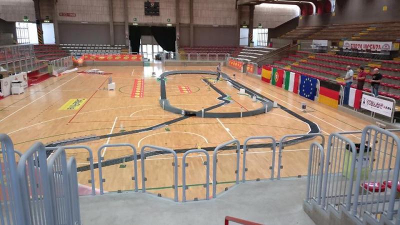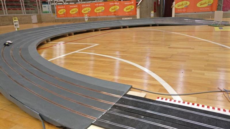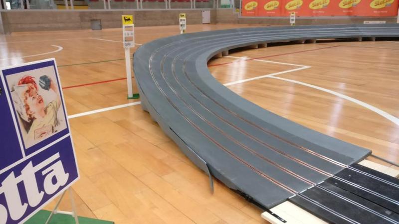 Mega Monza - la leggendaria pista di Monza, 'il Tempio della Velocità', completa di Anello di Alta Velocità, vive nella replica in scala 1/100 (100m) per due giorni di gare di autopiste digitali con sistema oXigen Slot.it.