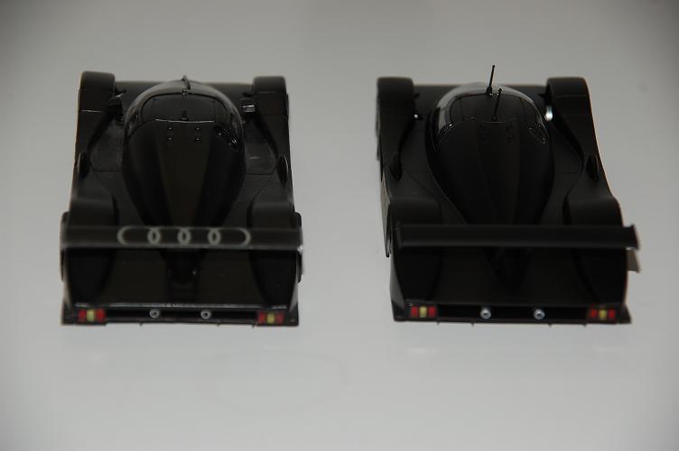 VU DE FACE ET DESSUS A GAUCHE LA VERSION OFFICIEL SLOT IT DE 2005 ET A DROITE LA VERSION MODIFIE SLOT IT 2008
