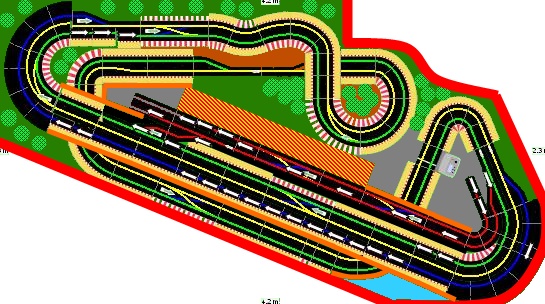 C'est juste pour l'idée, je te laisse voir si tu veux 3 voies, les changement, les courbes, etc... tel quel il fait déjà17.76m ce qui est pas mal !