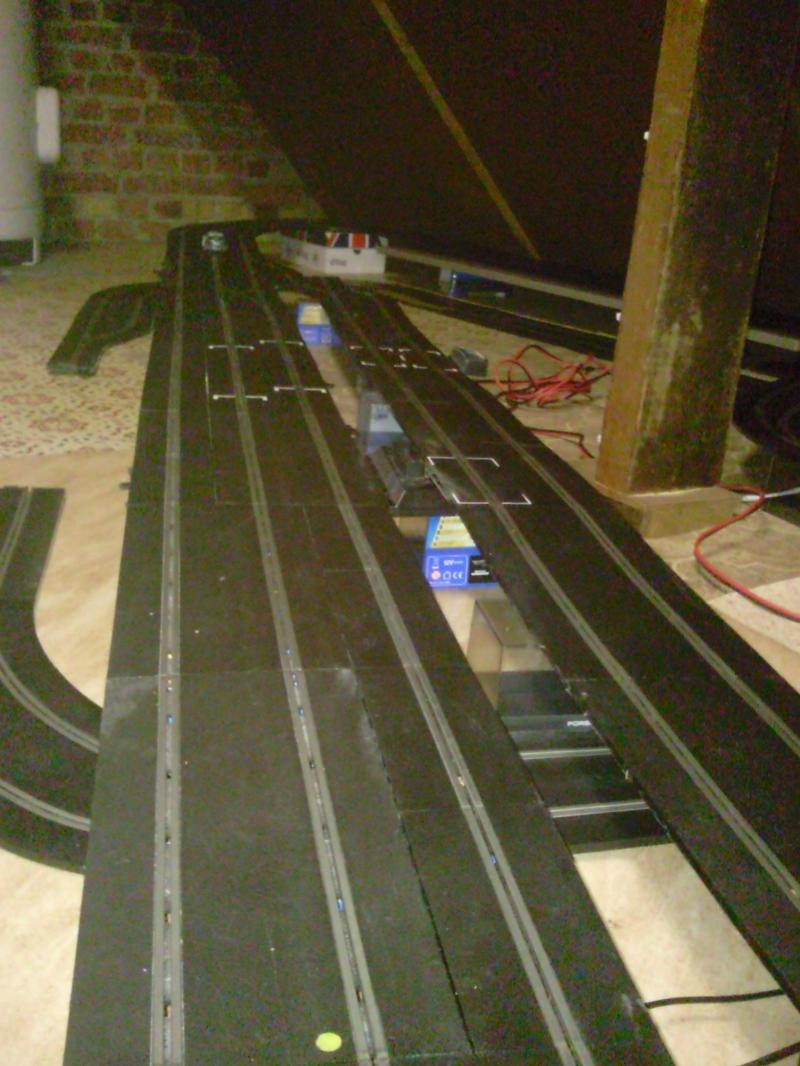 donc, tkt pas pour la pente sous toit ou le poteau que tu vois sur la photo, le circuit ne sera pas installé dans le grenier, c'était juste pour pouvoir roulé un peu le temps des travaux.