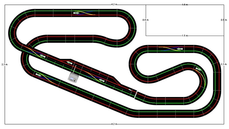 Mes goûts ne sont pas universels mais je critique ton (tes) tracé(s) simplement pour te mettre en garde d'une éventuelle déception (qui n'aura peut-être jamais lieu). D'autres ont monté des circuits beaucoup moins chiadés et en sont revenus, et ce n'est pas ce que je te souhaite. Si tu prends beaucoup de plaisir avec l'un ou l'autre de ces circuits, ainsi que ceux qui ont donc la chance d'y rouler, je n'ai plus rien à redire.Voilà juste un exemple vite fait de ce qui me plaît d'avantage par rapport au plateau :