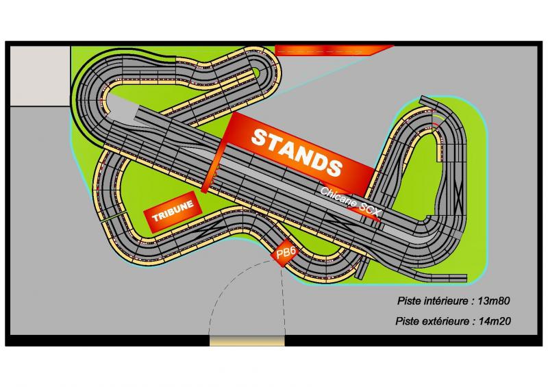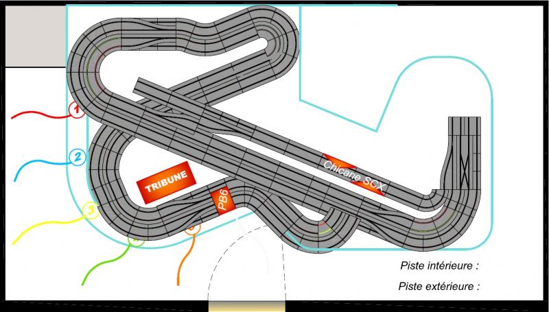 de mon coté, je réfléchissais à remplacer les R2 en bas à gauche par un pack SCX chrono pack, de manière à y insérer un rail R2 avec entrée de voie dans la courbe.
