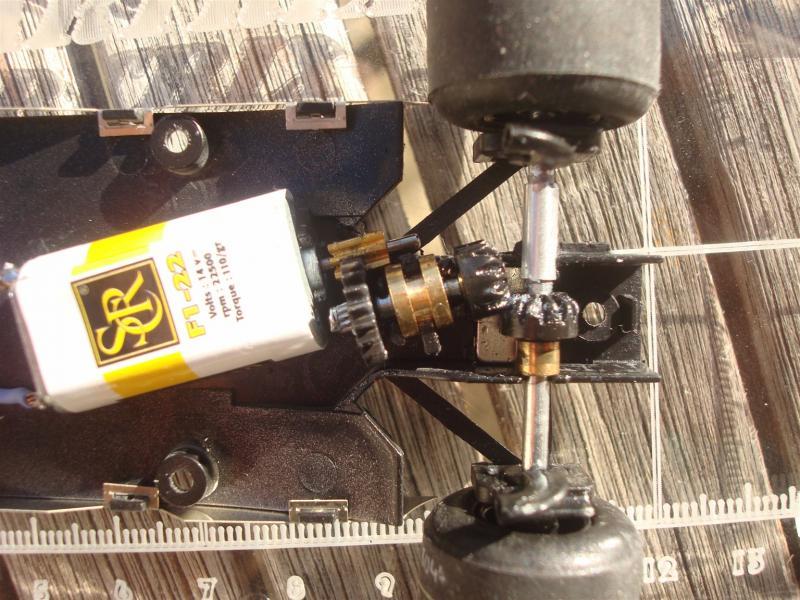 Je viens d'acheter la Renault de SRC et là la grosse galère ça va être leur système de transmission et axe arrière avec des pignons et couronnes en oblique.Cela sans doute pour des raisons esthétiques et de fidèlité à la voiture échelle 1 en ce qui concerne la partie moteur.