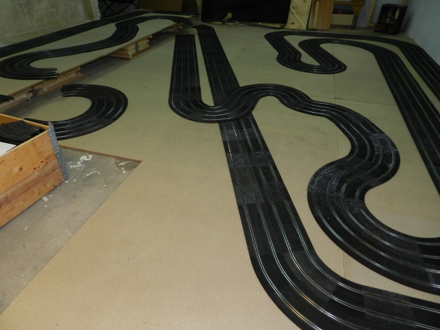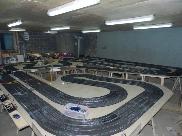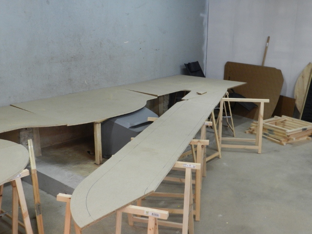 Préparation des plateaux servant à recevoir le circuit ninco (environ 45 métres en 4 voies) équipé en davic.