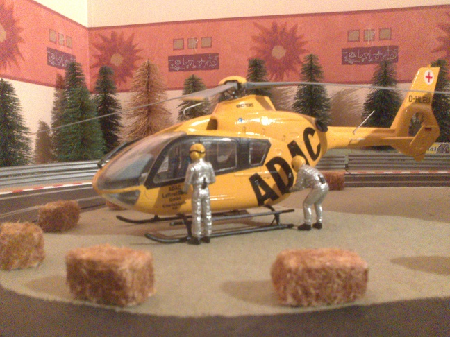En attendant j'occupe mes longues soirées d hiver, je cherchais un hélico pour égayer la piste , mais pas facile de trouver ces bêtes au 1/32.