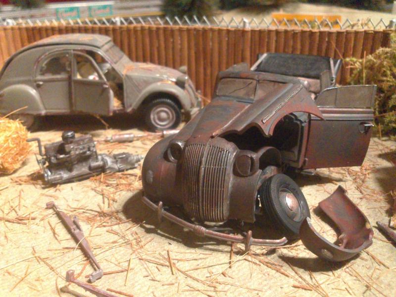 Une autre nouveauté dans la déco du circuit aussi, une vielle carcasse est venu accompagner la 2cv burago que Drix avais patiné il y a déja un moment.