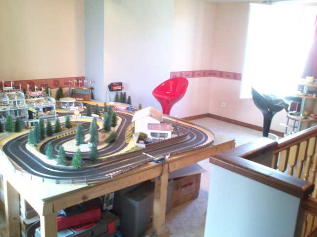 j'ai entrepris quelques petits travaux affin de rajouter une extension au circuit.Me voila parti à bouger tous les meubles pour voir de quel espace je pourrais disposer.