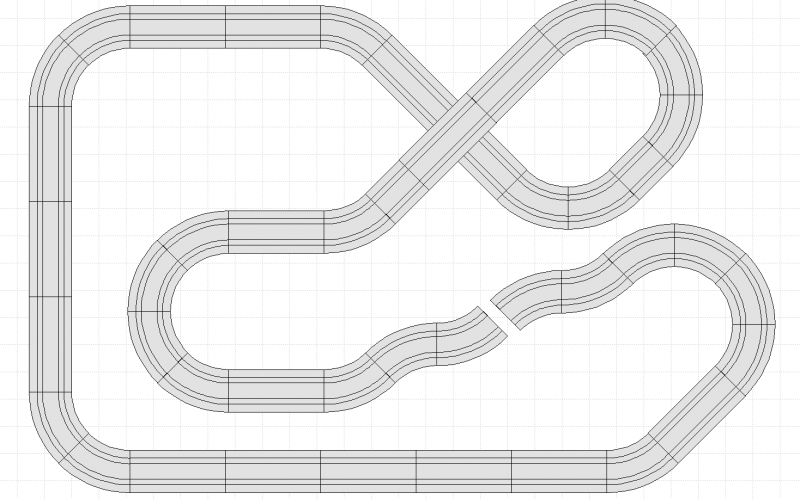En 10 mn environ, sur Tracker 2000, avec des rails Scalextric (Classic ou Sport) , voilà ce que je te propose...