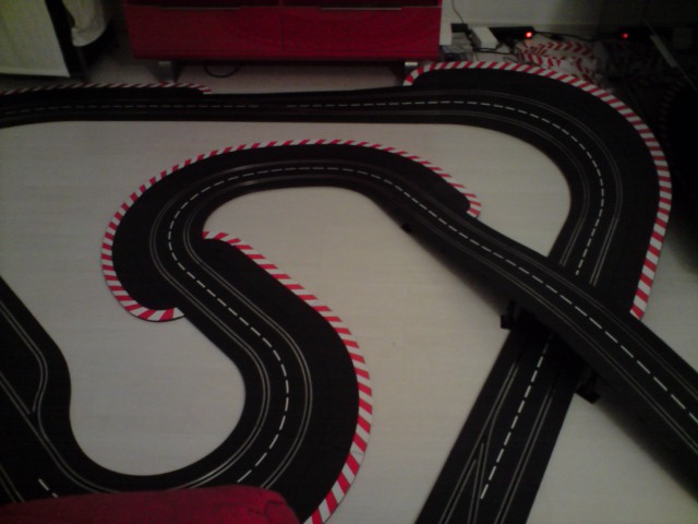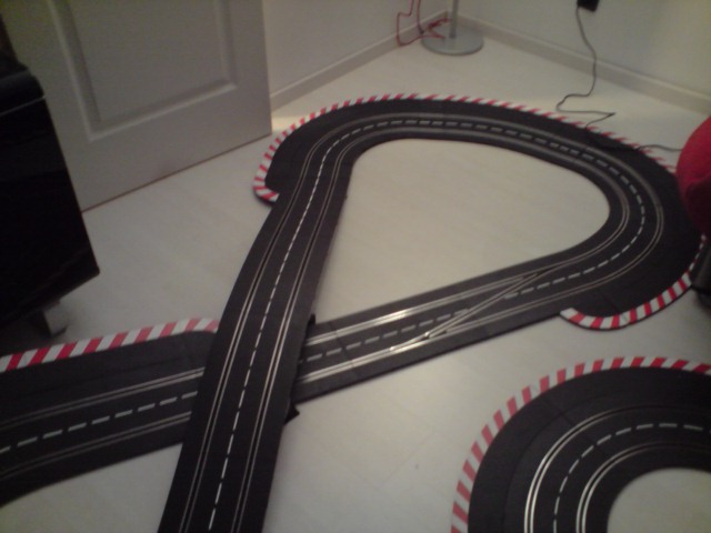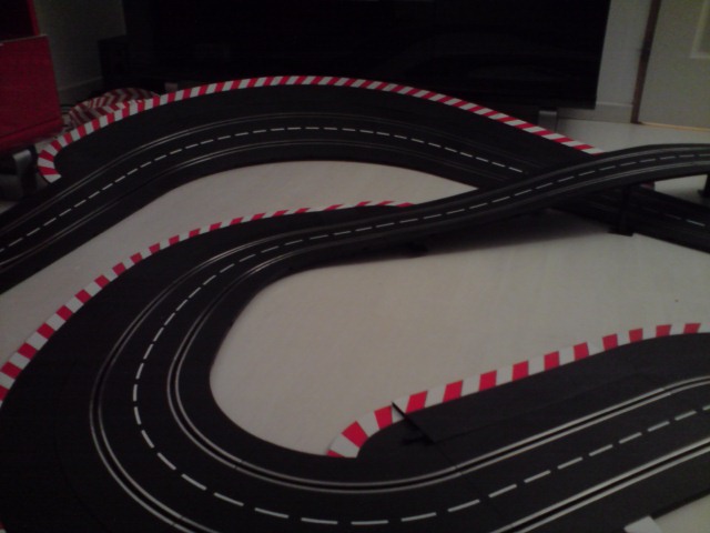 Autre point "noir" l'emplacement du rail de chronométrage que je dois placer avant ou après les stands mais à coté de la black box car le fil est tout petit.