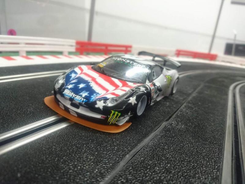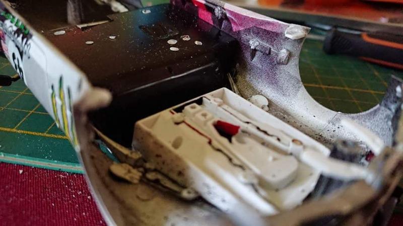 Par contre pour la rendre performante pour le championnat PACA 2017 il a fallu alléger la carrosserie en enlevant le kit éclairage et en remplaçant l'habitacle par un modèle sloting+ en lexan