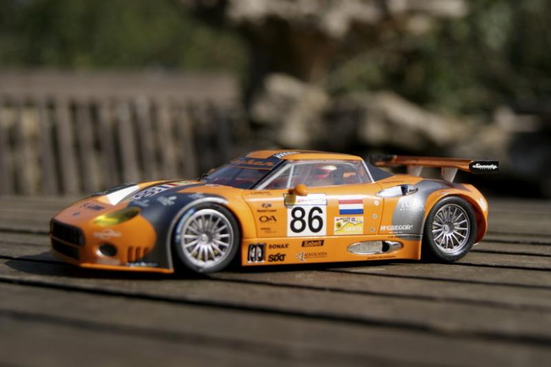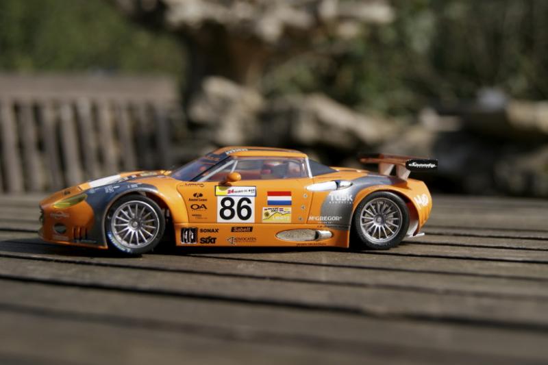 hiers soir premier tour de roues , elle va trés bien je pense que le moteur aimante un peu trop , j ai changé les pneus par nsr , le ressort du guide lui léve le net énormément sur la piste , je ne sais pas si je vais l'enlevé ou mettre un plomb , la finition est trés belle la carrosserie me parait trés fine , les rétros sont aussi fragile j en ai déja arraché un , quand les contructeur de slot vont ils pensés à mettre des retros ainsi que des support d aileron souple ...