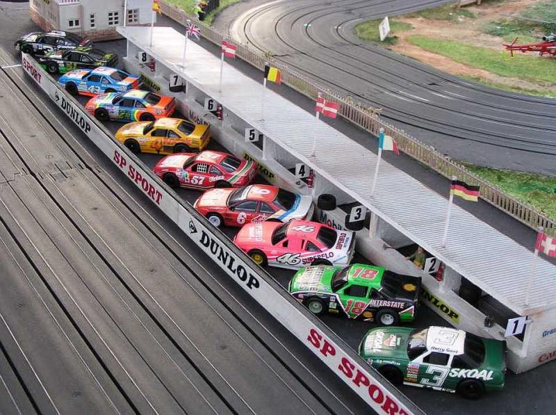 Ne cherches pas à faire strictement à l'echelle car les stands seront demesurés par rapport à ton circuit et la piste paraitra ridicule .
