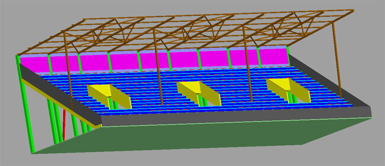 Même en essayant de simplifier au niveau détails , pour rester le plus possible conforme , on arrive quand même à une sacrée construction.Si , après , tu veux faire une tribune , et pour rester dans la déco. SPA.....voilà: