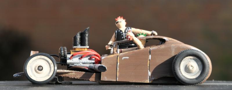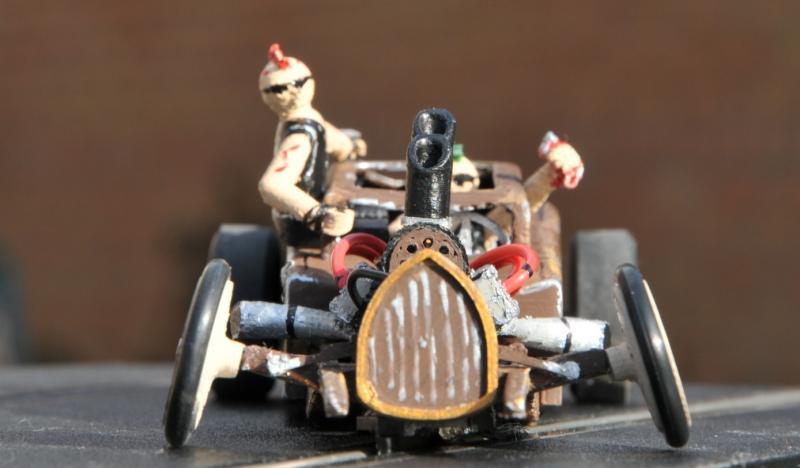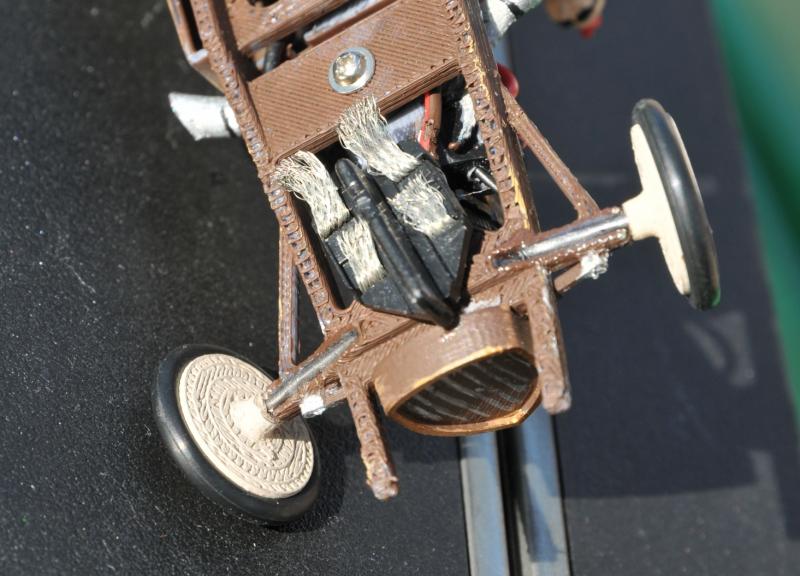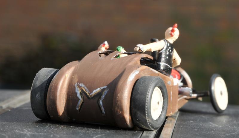 Le pilote et son passager assis sur la portière sont également réalisés par impression 3D, c'est une figurine modélisée en 3D et dont les membres sont articulés, on positionne les membres suivant la forme voulue, on enregistre en stl et l'imprimante fait le reste ! L'idée du passager assis vient de mon fils, je l'ai trouvé excellente et j'ai donc tenté le coup sur la voiture ! Le chauffeur tient dans sa main gauche une canette... d'une boisson non alcoolisée mais fortement sucrée