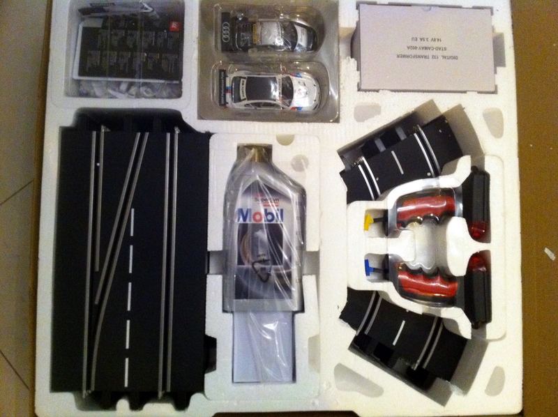 Finalement je me suis décidé à commencer avec un kit digital car je souhaite pouvoir jouer à plusieurs sur 2 pistes avec possibilité de faire des dépassements et j’aimerais aussi pouvoir agrémenter les courses avec une « gestion » d’essence et des arrêts aux stands.