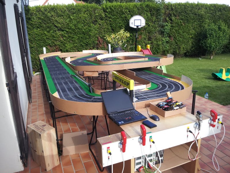 salut, quel est le développé de ta piste, cela me semble bien grnad pour etre un ninco four lane du commerce, tu as complété avec d'autres rails au détail?