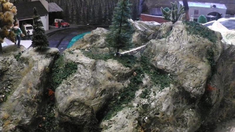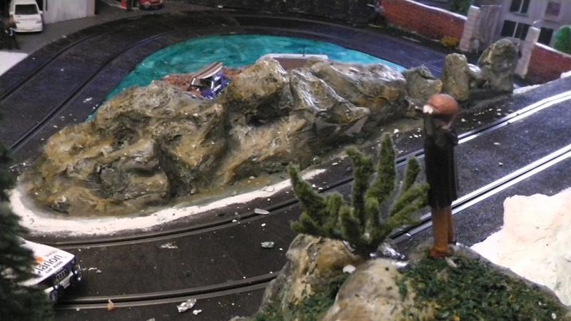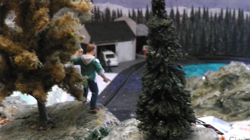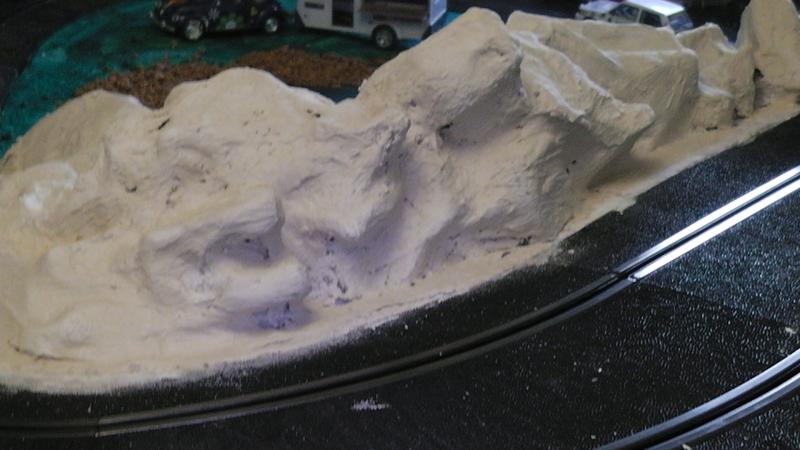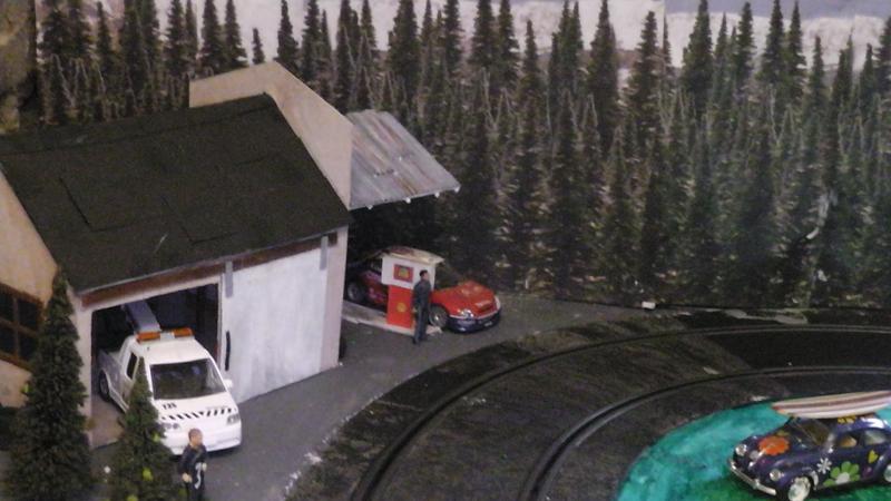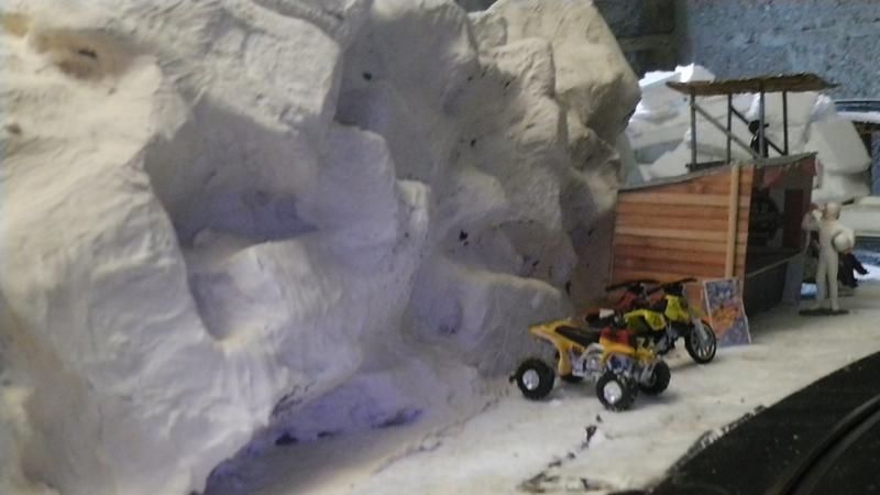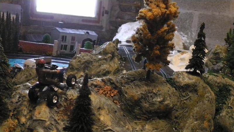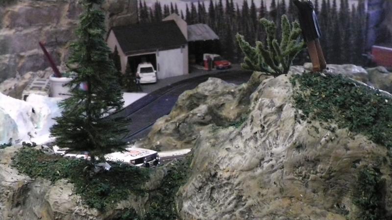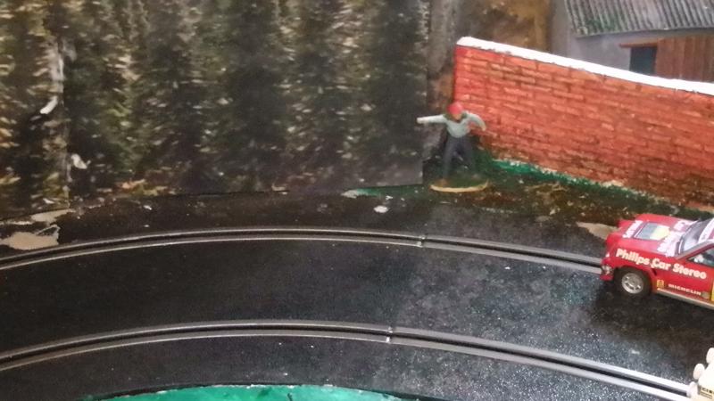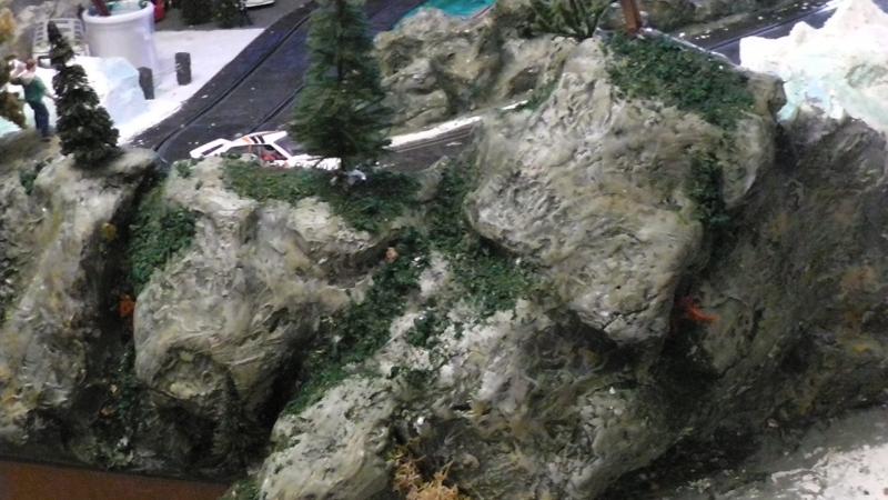 Une petite remarque: le bord de ton petit étang qui borde la piste est trop net, rajoutes un peu de roche et de végétation rase en trompe l' oeil au pinceau.