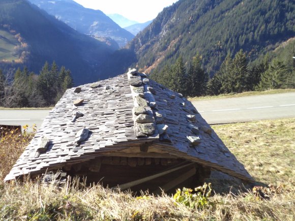 Principalement en Italie alpine du côté de Cueno, Bardonecchia, Sestrières, Pinerolo (Pignerol) il existe encore des toitures "traditionnelles" alpines (lauzes bois, lauzes pierre, tôle ondulée) sur lesquelles des pierres sont posées pour freiner le glissement de la neige (qui fait isolant contre le froid l' hiver)