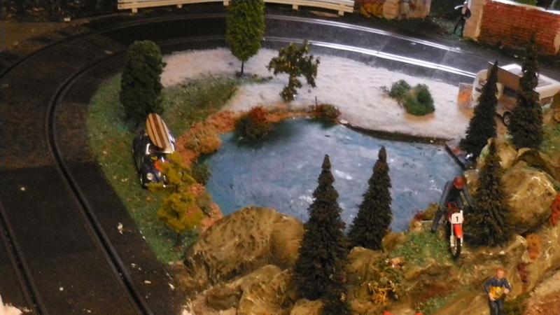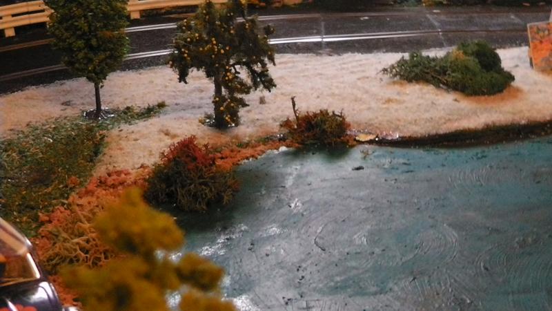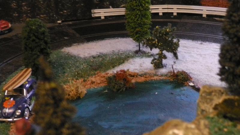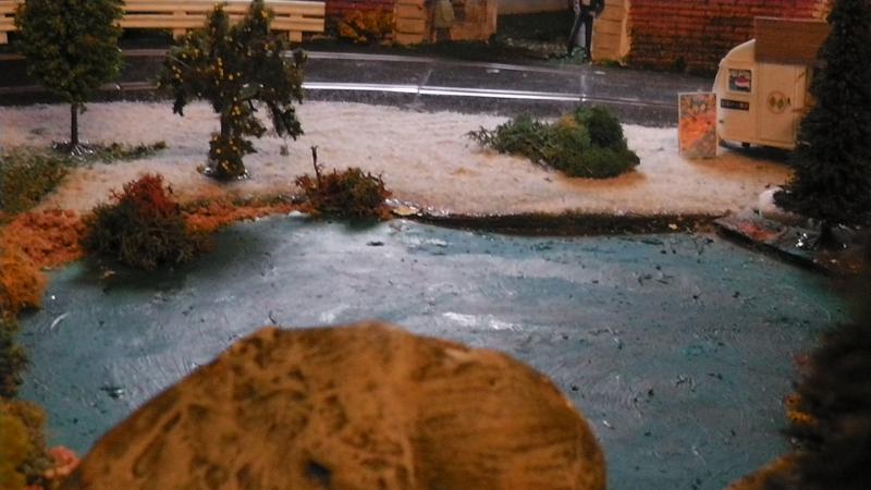 A l'époque de notre premier circuit, on avait fait la déco un peu comme toi en emprisonnant les rails dans tout et n'importe quoi : plâtre, bois, mastic, etc.... gravissime erreur puisque les rails Scalex classiques s'étaient gondolés comme c'est pas permis. J'espère que ta pièce est à température constante!