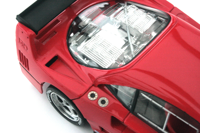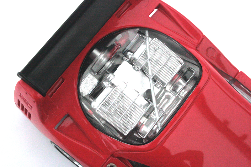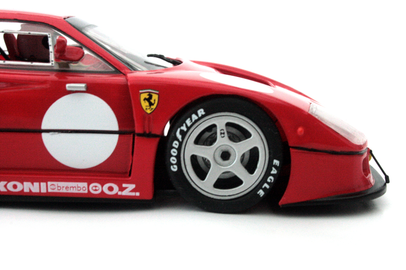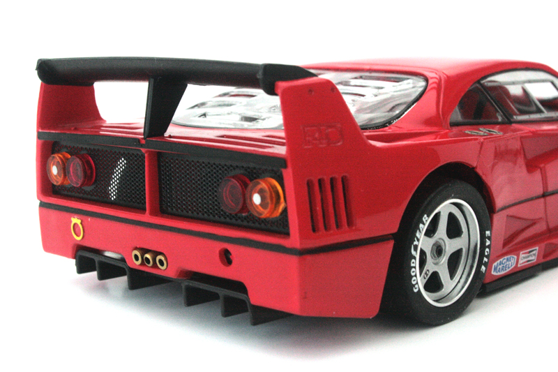 L’arrière de la F40 est bien représenté. Les phares sont de bonnes tailles. Les jantes à bâtons sont splendides.