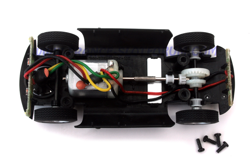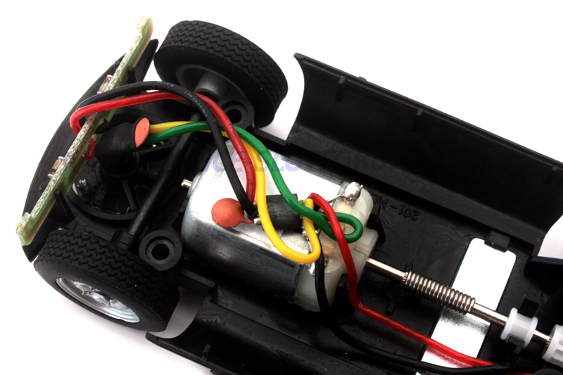Une fois en piste, avec aimant, on tombe sous le charme de l'éclairage de l'auto. Avec la teinte verte, il est du plus bel effet! Coté sensations, même si l'aimant est efficace, l'auto n'en demeure pas moins très agréable à piloter.