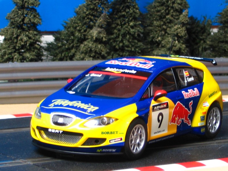 En changeant les pneus arrières par des ninco 19x10. la voiture accroche un maximum et est collé a ma piste. Les tours s'enchainent sans déslotter et, on pousse la Léon dans ses limites facilement.