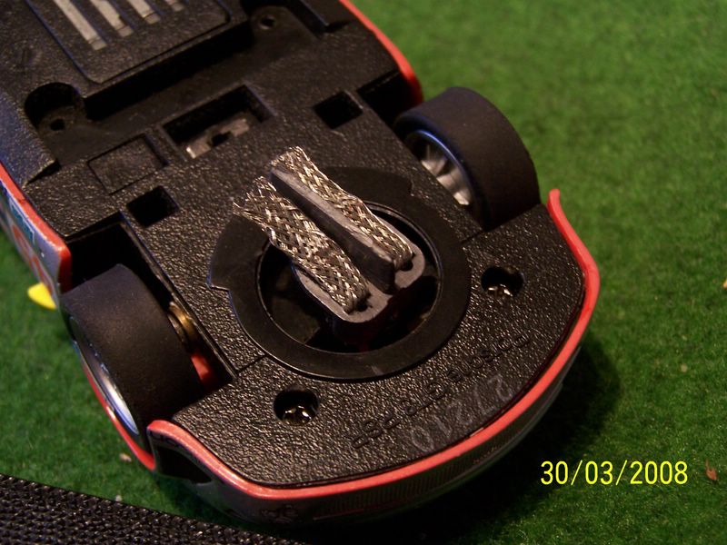 Salut, cette après-midi j'ai fait l'essai suivant j'ai enlevé toute les parties pour la lumière car je n'utilise pas ceci cela tire trop de courant sur le digital ensuite j'ai rempli de plombs l'avant de la voiture (plomb maléable de pêche) et la surprise la voiture passe de 6.48 à 6.17 et passe de la 7 ème à la 4 ème positions juste devant ma 917 k fly qui est une bombe et que du bonheur mais toujours aussi bruyante mais temps pi je mets cela sur le compte du chassis qui a surement été enlever trop vite de son moule j'ai vu d'ailleurs que plein de sloteurs on des surprises à l'ouverture du produits neuf meme vu cela sur une slot-it R 390 Nissan qui avait son chassis vriller Inadmissible