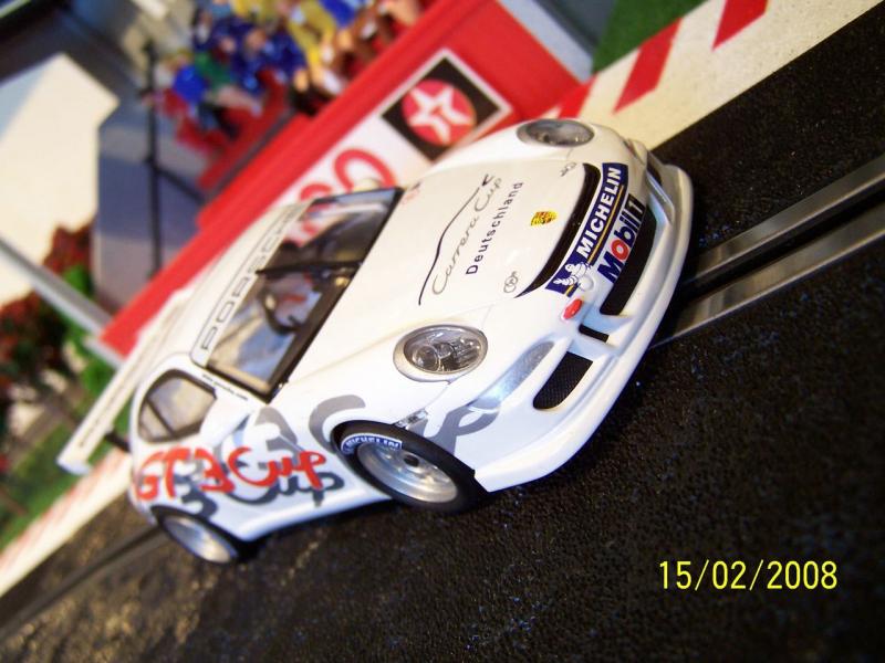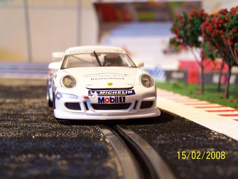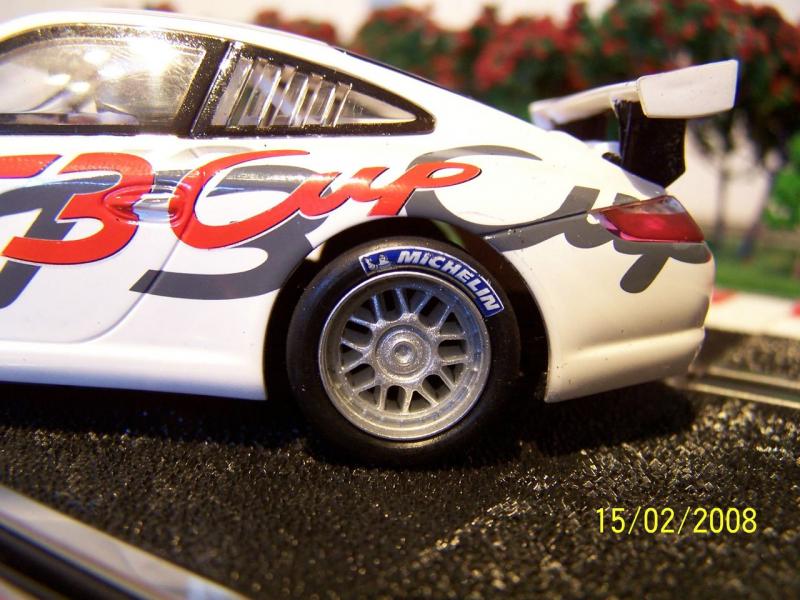le comportemment est tres sain, l'auto prevenante, les glissades sont bien maitrisée et ont s'amuse tres vite, mais comme d'hab si on ne veut pas glisser ben on pilote plus cool et là les chronos tombent.cette porsche est largemment au niveau des aston-martin, corvette, 360, equipées du meme moteur. sur le ninco les pneus ont une bonne accroche qui permet de bonne glisses a mon gout. un test en pneu ninco montre le potentiel de l'auto, le grip permet des acceleration tres vive et une accroche en courbe tres bonne, mais je prefers en configuration d'origine, c'est moins rapide mais je m'amuse plus, mais ca comme d'ahab c'est au gout de chacun.En revanche au vue de leur aspect ces pneus risque d'etre "leger" sur carrera ou scalex sport......a voir.