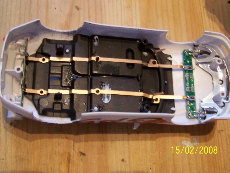 en revanche, comme sur les dernier modele, le train avant est constituer de 2 demi train, je n'aime pas trop ce genre de conception, mais la on est tres loin du fly, c'est stable et ne gene nullemment la tenue de route. Ce choix est motivé par la possibilité d'adaptation de la puce scxd.