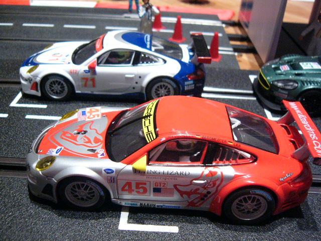 - c'est vrai qu'à fond en ligne droite la Porsche rsr (un peu plus perfo que les dtm), décolle sur l'aiguillage et hop : dans le bac.