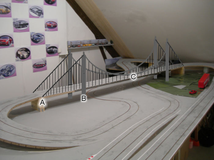 sinon, je viens de prendre les vrais cotes pour mon pont, j'etait un peu en souci par rapport a l'emplacement des piles !!!!!! j'avais peur qu'elle tombent en plein sur les voies !!!! mais ça va bien le faire, et je viens de m'amuser a faire une simulation !!!!!! et je doit avouer que ça me motive encore + !!! la simulation ......................