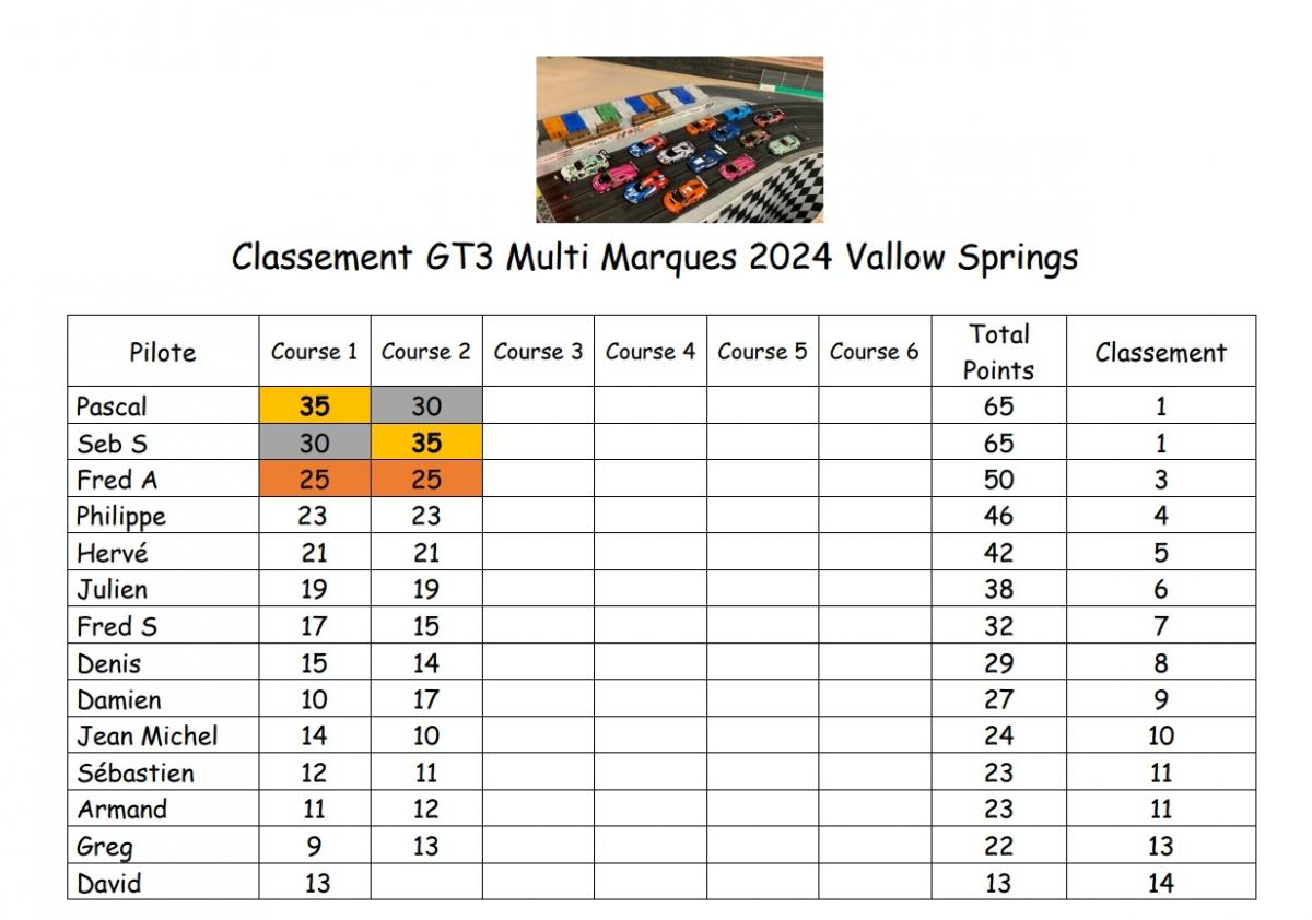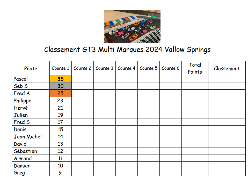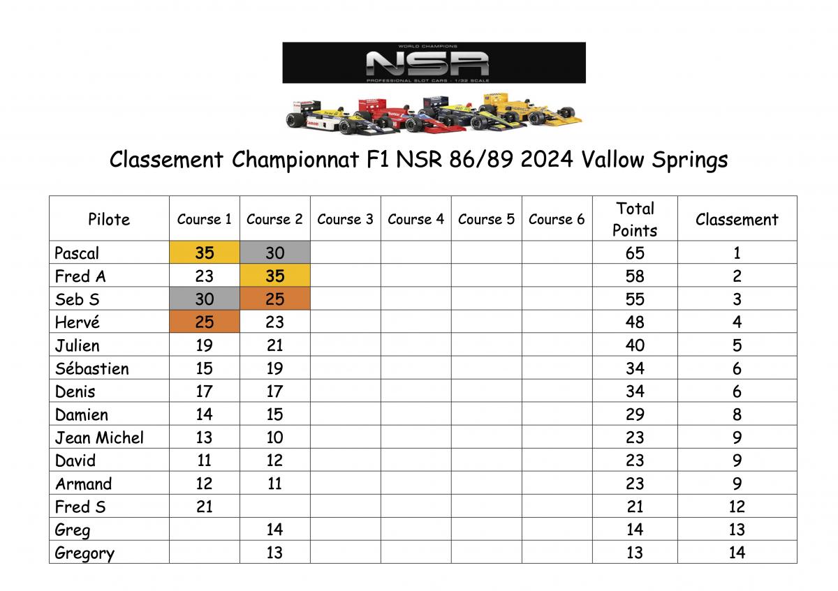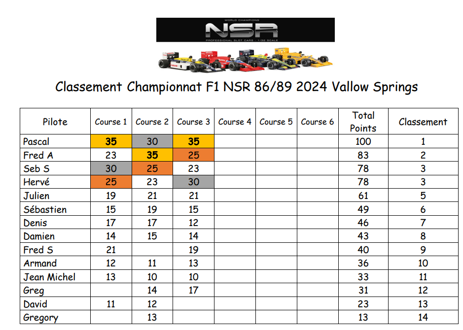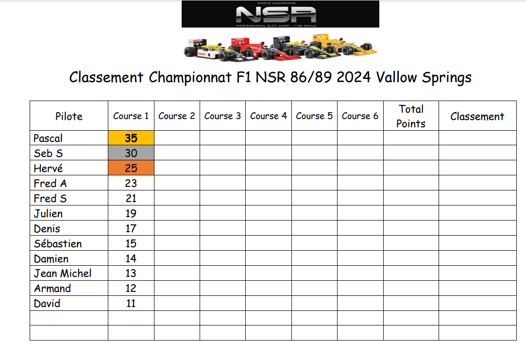 Nous avons 5 championnats : Classic NSR, Groupe 5 Sideways, F1 NSR, GT3 Multi fabricant et DTM Slot IT en 2 fois trois manches, donc 6 courses sur chaque catégorie dans l'année.
